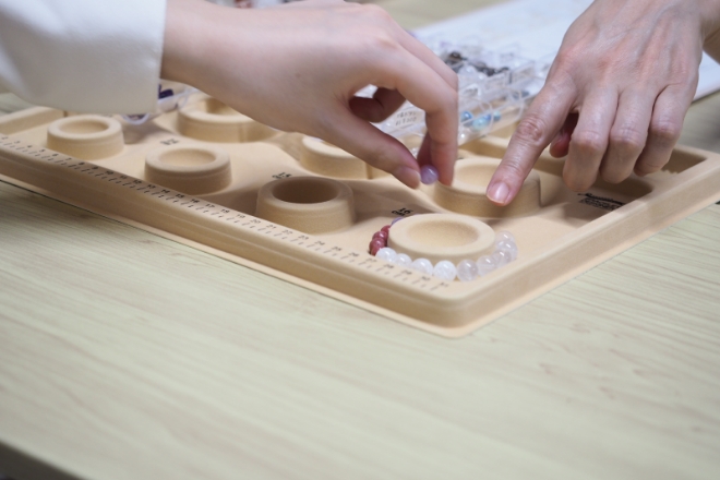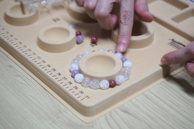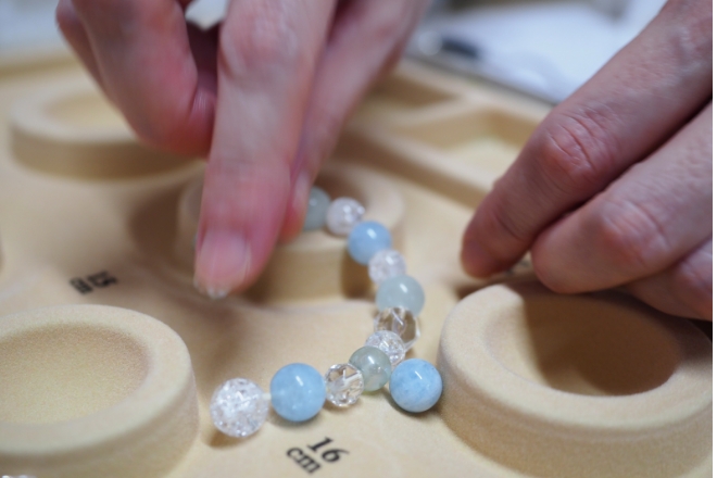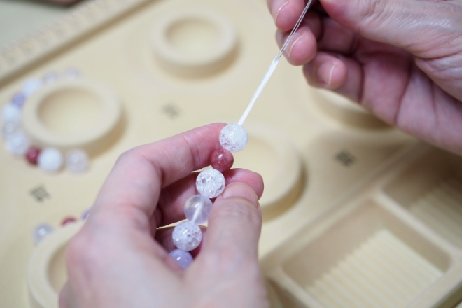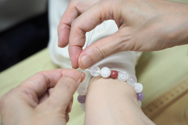 ゴムの交換や石の組み換えなどブレスレットのメンテナンスをします