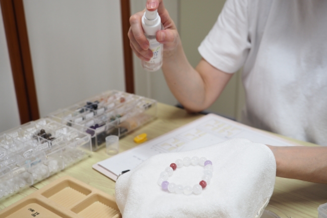 一度作ったブレスレットを大切に使っていけるようゴム交換や石の浄化などメンテナンスを行います。当店は石を使い捨てにしませんので、一部の石だけを組み替えることもできます。